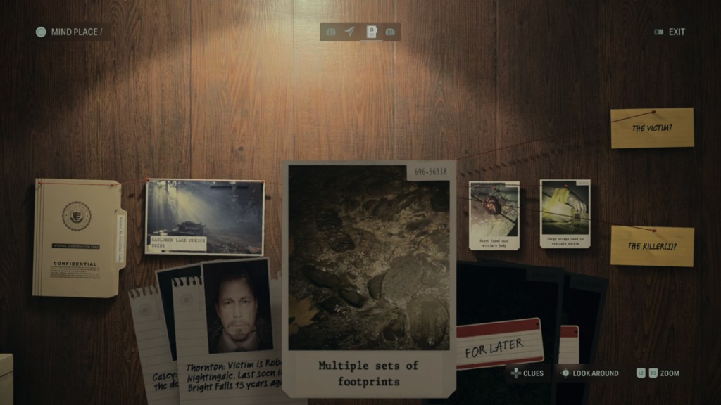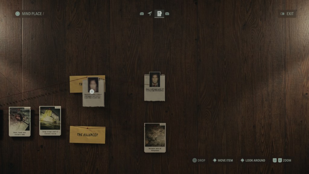 Per mettere gli indizi sulla bacheca nella mente in Alan Wake 2, dovrai prima identificare dove andranno a finire gli indizi. Ogni sezione del tabellone è suddivisa in diverse sottocategorie. Dovrai premere il tasto direzionale verso l’alto per visualizzare la chiusura disponibile che hai. Da lì, premi il pulsante di conferma e posizionali nella sezione più adatta.