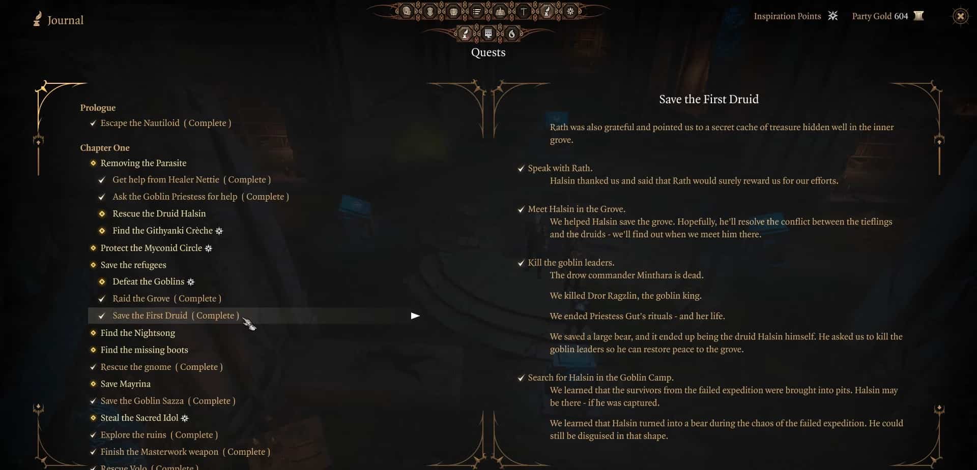 Per risolvere questo puzzle, devi completare Salva la missione del primo druido. Questa ricerca prevede il salvataggio di Halsin, l’orso druido, e l’aiuto a ripristinare il boschetto. Questo significa anche uccidere il re dei goblin. Dopo aver salvato Halsin, torna da Rath e raccontagli del tuo eroico salvataggio del suo amico.