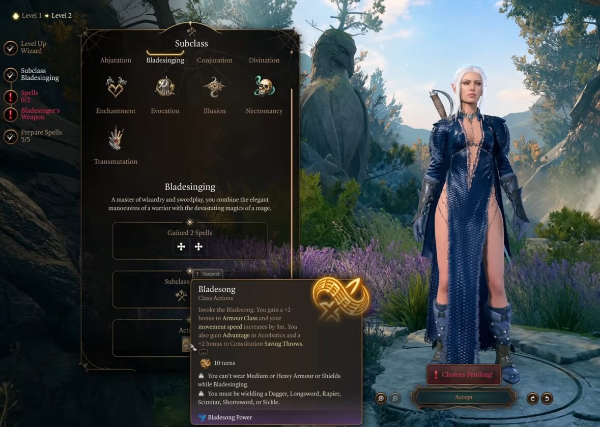 Le lame sono una nuova sottoclasse di mago in Baldur’s Gate 3 Introdotto con Patch 8. Questo mago è un maestro nell’uso delle spade e può invocare Bladesong per aumentare le sue difese e la velocità di movimento.