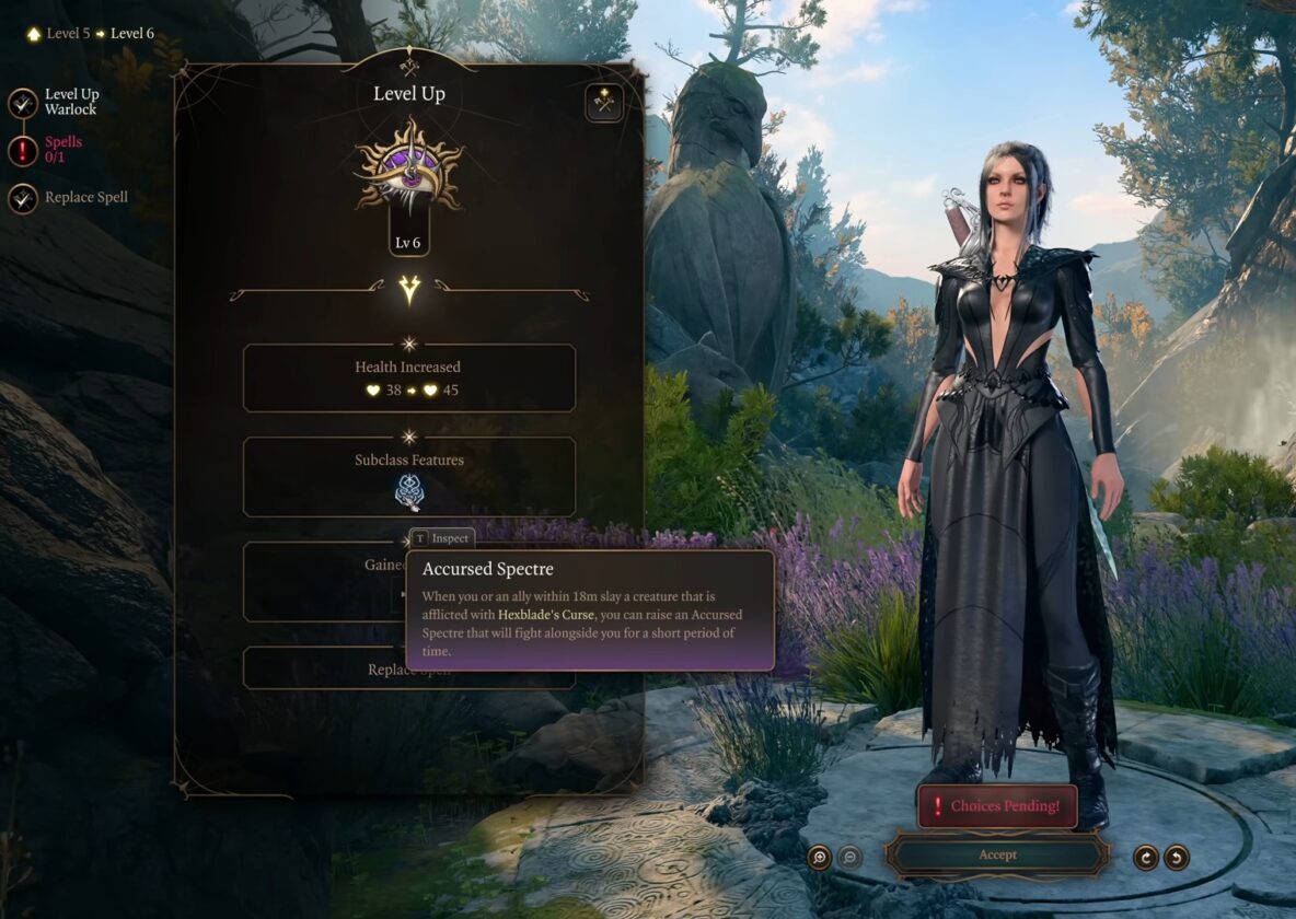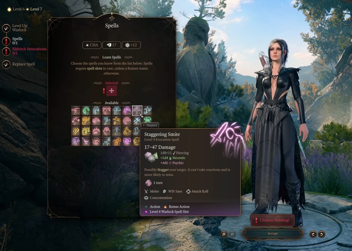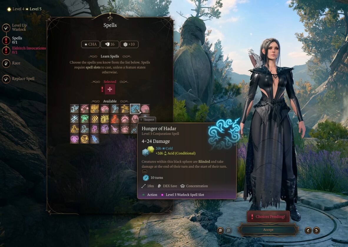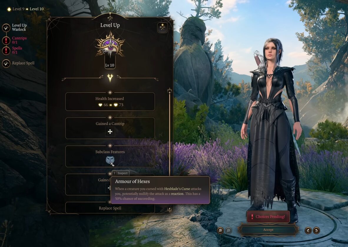 Al livello 9, il tuo HP aumenterà a 66 da 59. Ora puoi selezionare un’altra invocazione Eldritch.