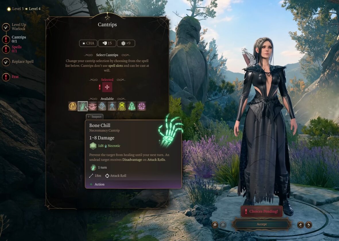 Al livello 1 per la classe Warlock, puoi accedere ai seguenti attributi dopo essere andato a lanciare la schermata di creazione del personaggio.