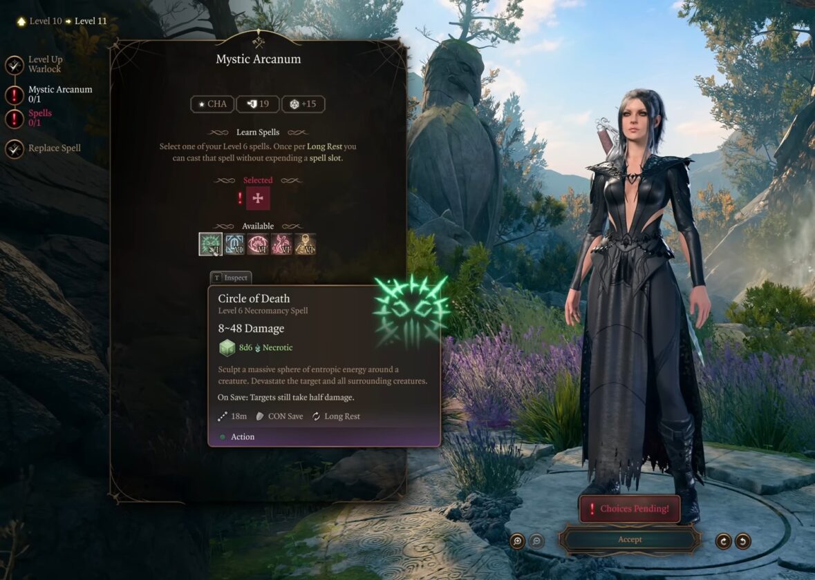 Al raggiungimento del livello 11, il tuo HP aumenterà a 80 da 73. Accedi anche all’accesso all’Arcano mistico, che ti consente di lanciare un incantesimo di livello 6 una volta per riposo a lungo senza usare uno slot incantesimo.