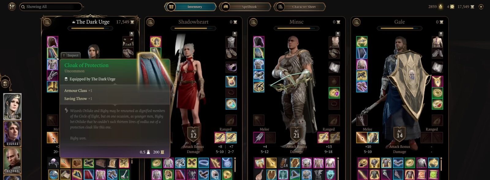 Armatura: abita di sacerdotessa di Viconia: Aumenta la classe dell’armatura di 1 e ti dà un vantaggio sui controlli invisibili.