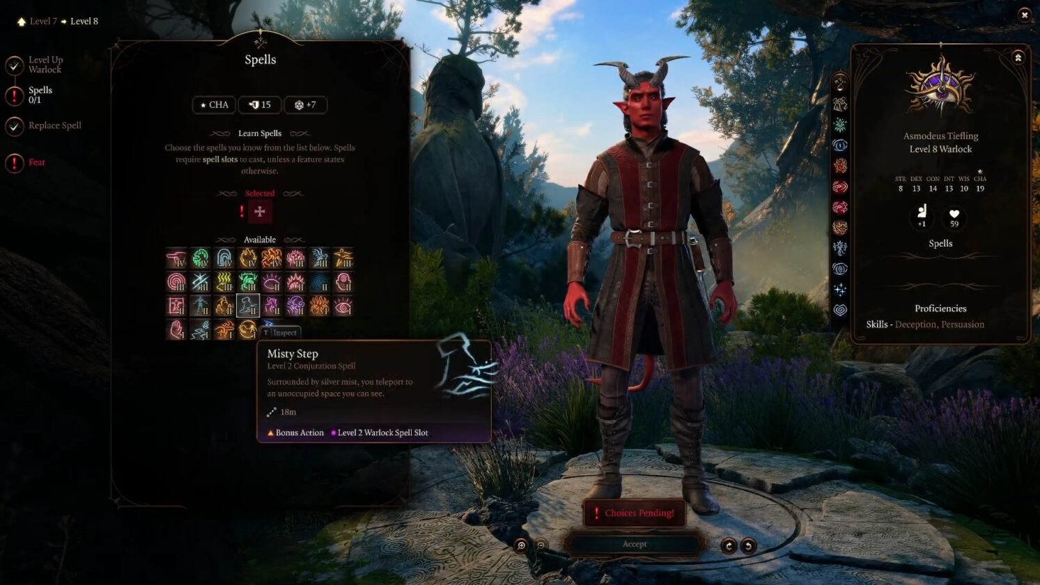 A questo punto puoi anche selezionare la sottoclasse per il tuo Warlock. Selezioneremo il diavolo, che ci garantirà l’accesso a altri due incantesimi.