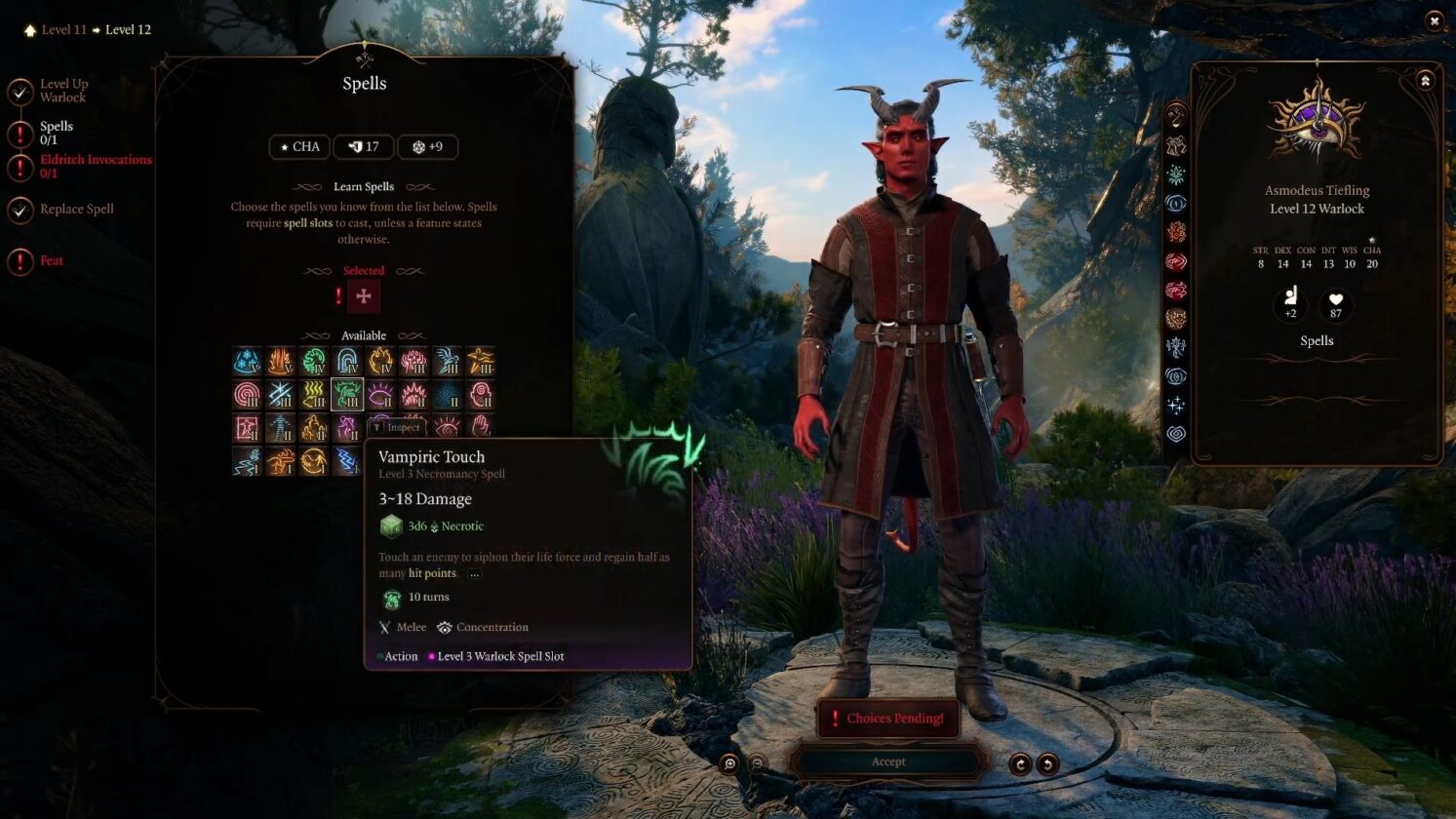 Non appena raggiungi il livello 12 per Warlock, puoi accedere a un altro incantesimo di livello 5. Tuttavia, selezioneremo invece un incantesimo di livello 3.