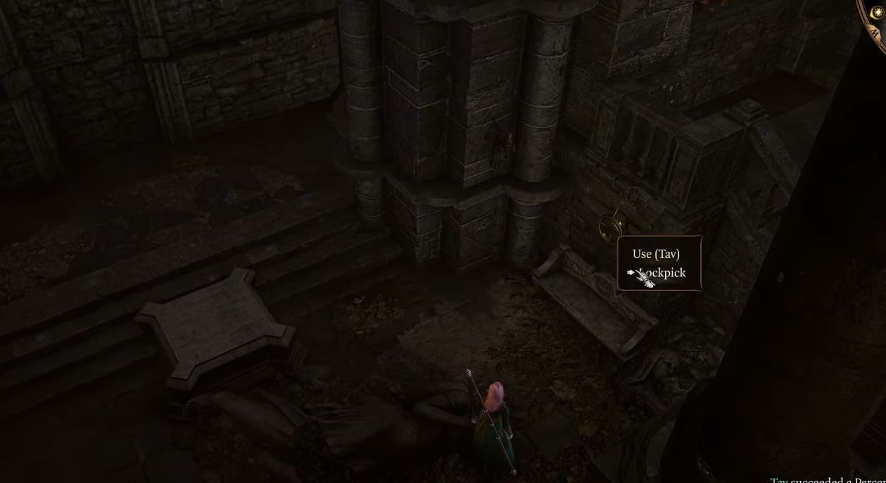 C’è un altro modo per aprire la porta del Sottosuolo. Tuttavia, questo metodo richiede un’elevata quantità di percezione. Se ti avvicini alla porta, noterai che c’è una leva. Uno dei membri del tuo gruppo eseguirà un controllo della percezione. Se il controllo della percezione ha esito positivo, vedrai un’opzione per scassinare la porta.