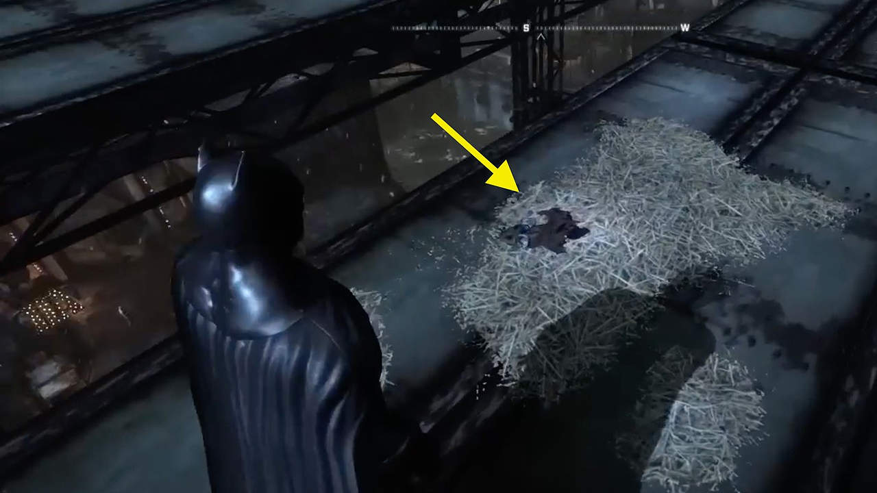 Dirigiti verso la sezione inferiore del ponte rotto situato a sud del distretto dei divertimenti per trovare una scorta di fieno depositata su un pezzo di strada crollato. Questa zona è anche vicino al Gotham North Docks.