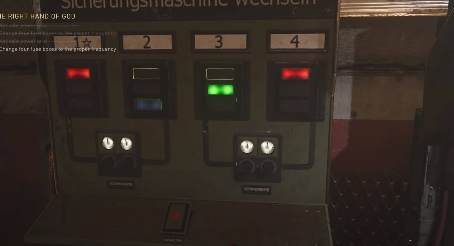 Per attivare la rete elettrica, devi andare al dispositivo situato dietro l’area in cui è costruita la pistola Tesla. Durante l’attivazione della rete elettrica, è fondamentale annotare o memorizzare i colori delle luci davanti ai numeri. Questi numeri sulla macchina sono direttamente collegati alle diverse centrali elettriche sulla mappa. Dopo aver annotato tutto, devi girare i quadranti su queste centrali elettriche in modo che le luci su tutte le centrali elettriche corrispondano ai colori sulla macchina.