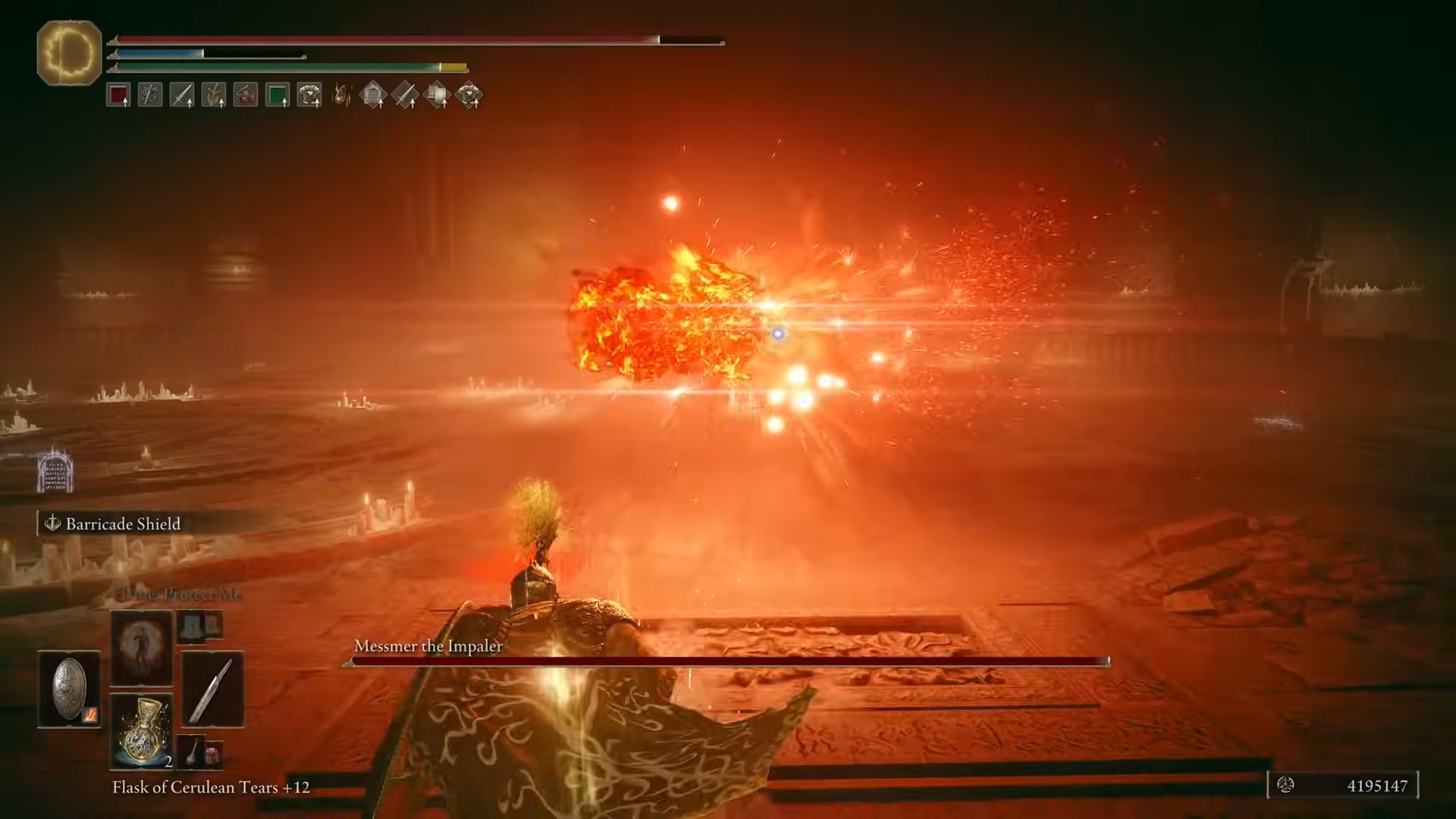 Messmer, l’impalatore, è un bambino poster per l’ombra del DLC Erdtree e è fedele alla sua reputazione di uno dei boss più difficili del gioco. Non appena entri nell’arena, Messmer ti accoglie con un attacco di esplosione.