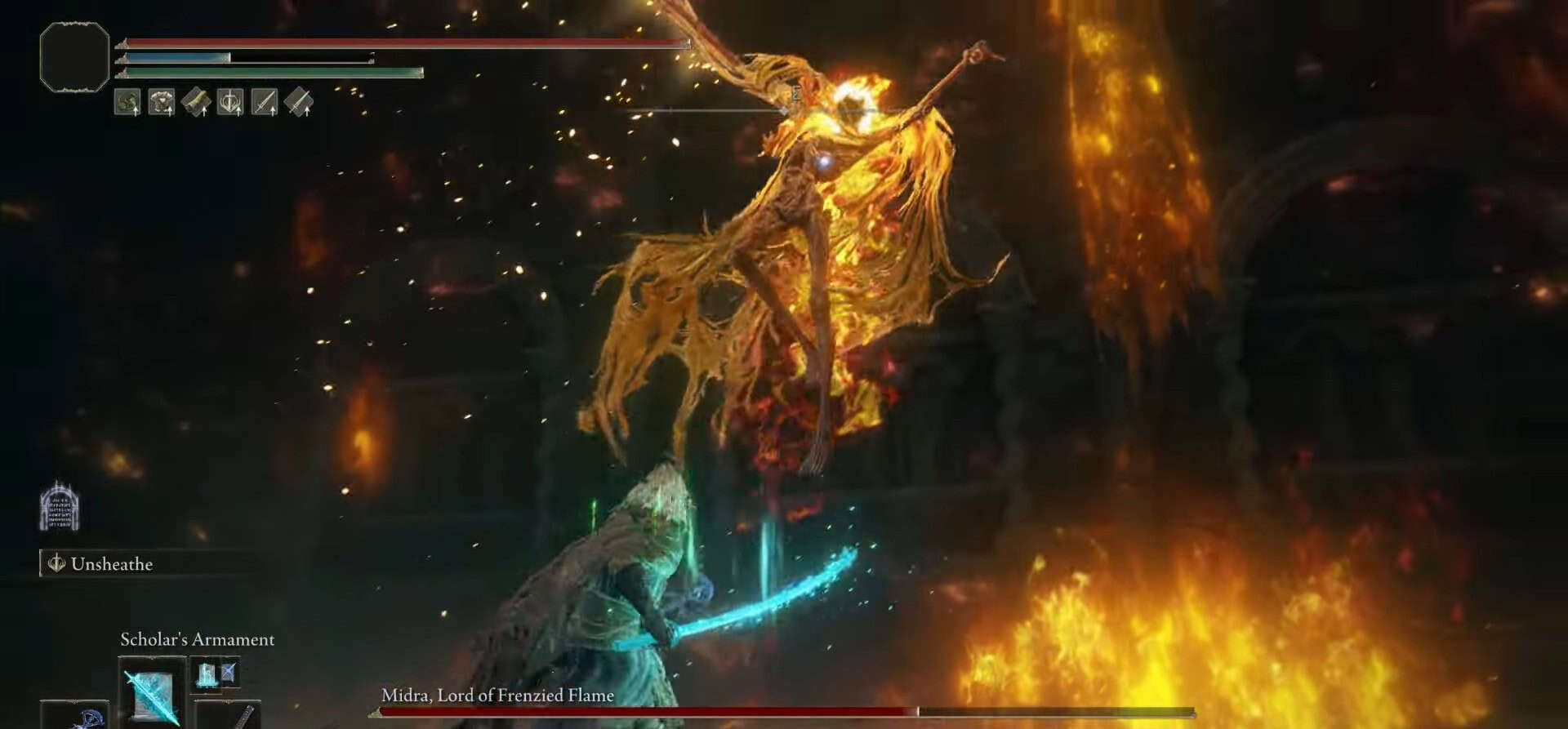 Una volta sconfiggi la forma umana di Midra, si trasformerà immediatamente in Midra, signore della fiamma frenetica. Evocherà una fiamma gialla sulla sua testa e inizierà a usare la spada spinosa.