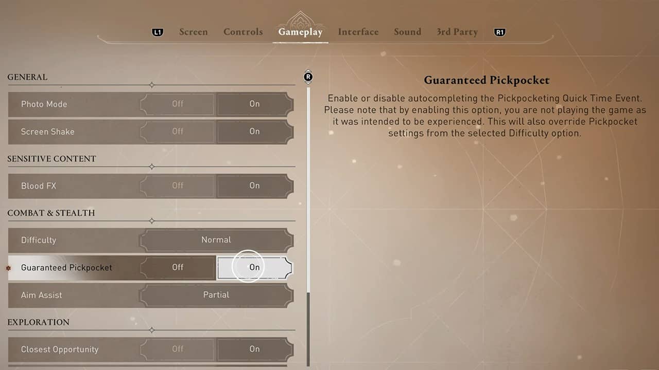 Questa opzione è indipendente dalle impostazioni di difficoltà, quindi non preoccuparti se sei in modalità difficile e non ti piacciono i QTE. Utilizzando lo stesso metodo, puoi disabilitare l’opzione di completamento automatico Borseggiatore in Assassin’s Creed Mirage.