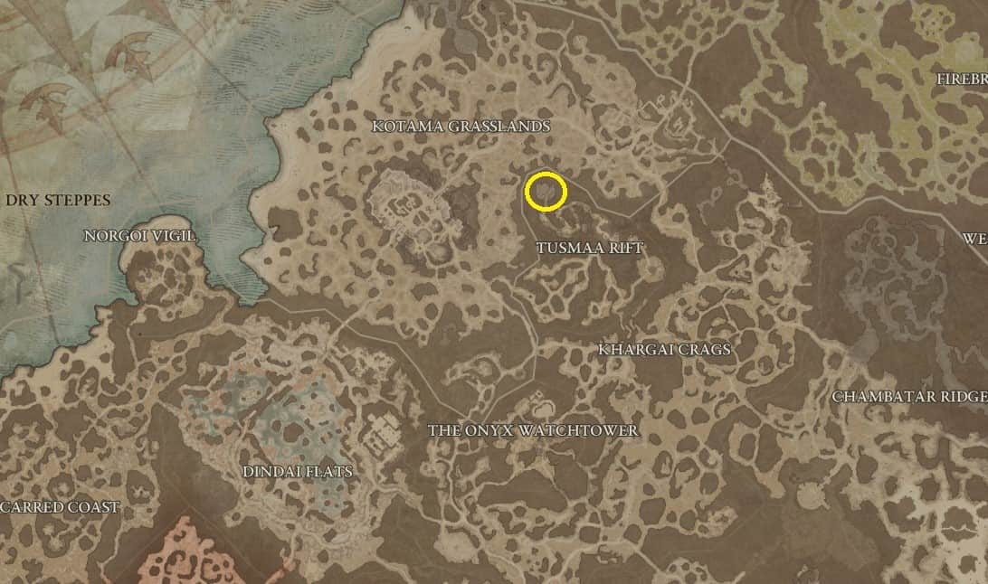 L’Aspetto della Potenza può essere ottenuto completando il dungeon Dark Ravine che si trova nella sottoregione Tusmaa Rift nelle Dry Steppes di Diablo 4.