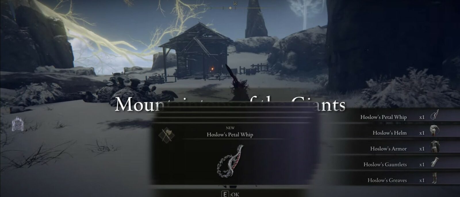 Dopodiché, ti verrà assegnato il compito di uccidere Juno Hoslow una volta ricevuta la lettera rossa. Per questo, dovrai affrontarlo alla Cima dei Giganti e una volta che lo avrai eliminato, il set di Hoslow sarà tuo per la conquista di Elden Ring.
