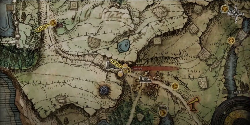 Puoi anche andare qui viaggiando velocemente verso Stormfront Site of Grace e poi seguendo il percorso per Gatefront. Poi andando verso i forti come descritto sopra.