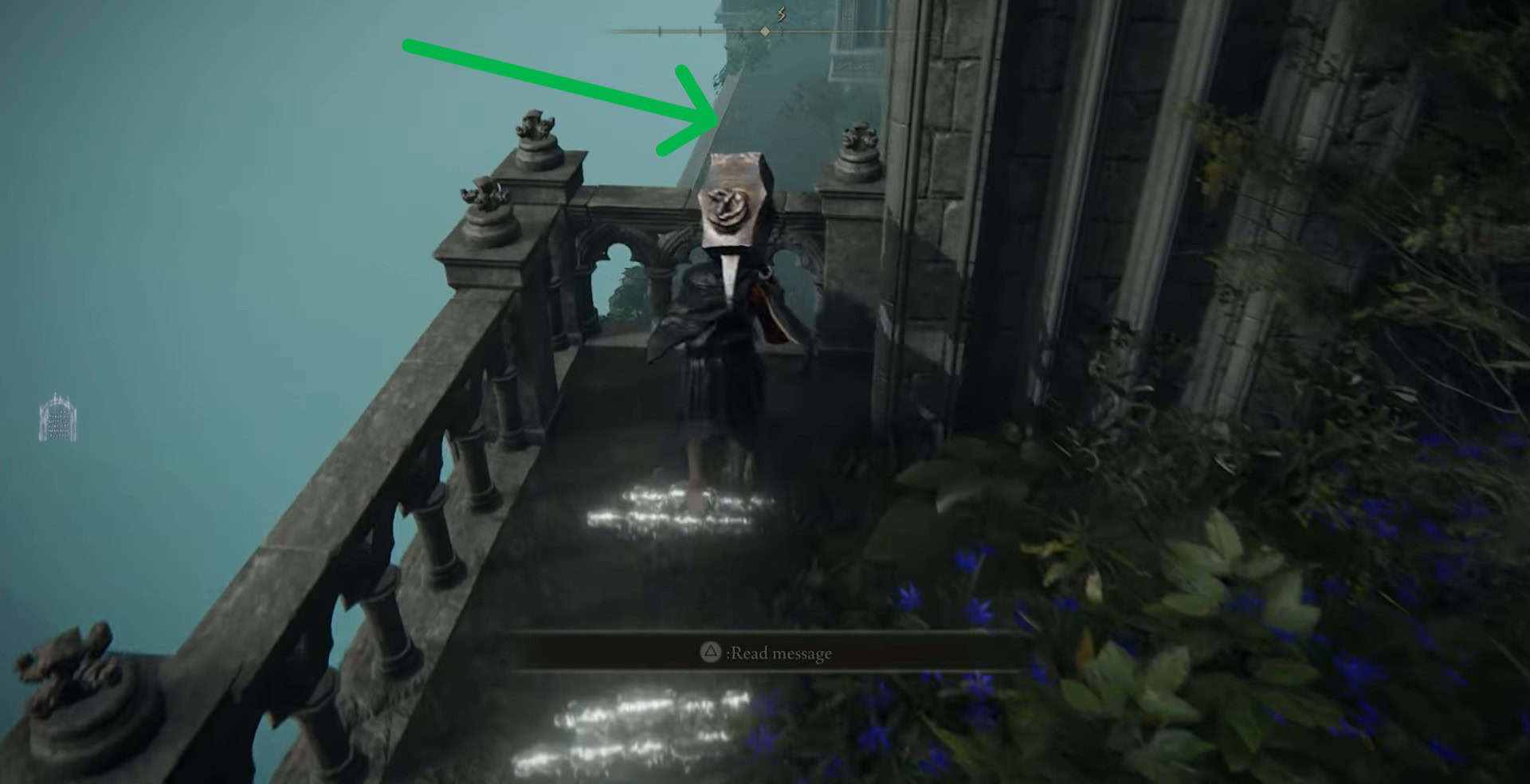 Vai dal lato opposto del balcone per individuare una cassa del tesoro. Apri la cassa del tesoro per raccogliere il talismano dell’icona di Radagon nell’anello di Elden.