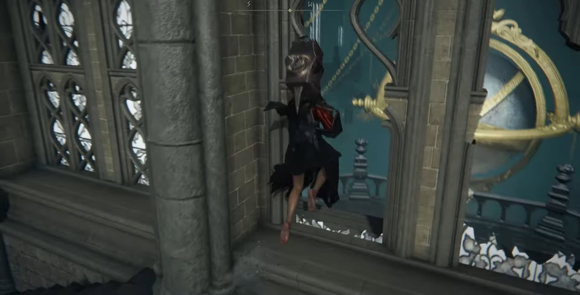 Salite la scala e salta attraverso la finestra rotta a destra per entrare nel balcone sopra il salotto del dibattito.