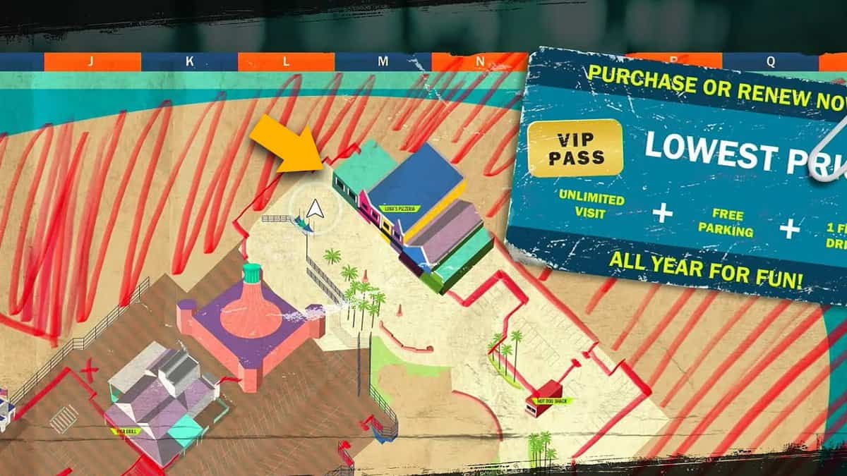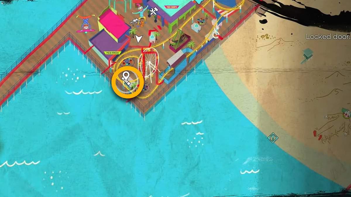 Per la prima parte del codice, devi viaggiare a nord-ovest dal quartier generale verso l’area finale del molo. Dietro la gelateria, troverai un piccolo vicolo con una panca di legno e una bellissima vista sull’oceano.