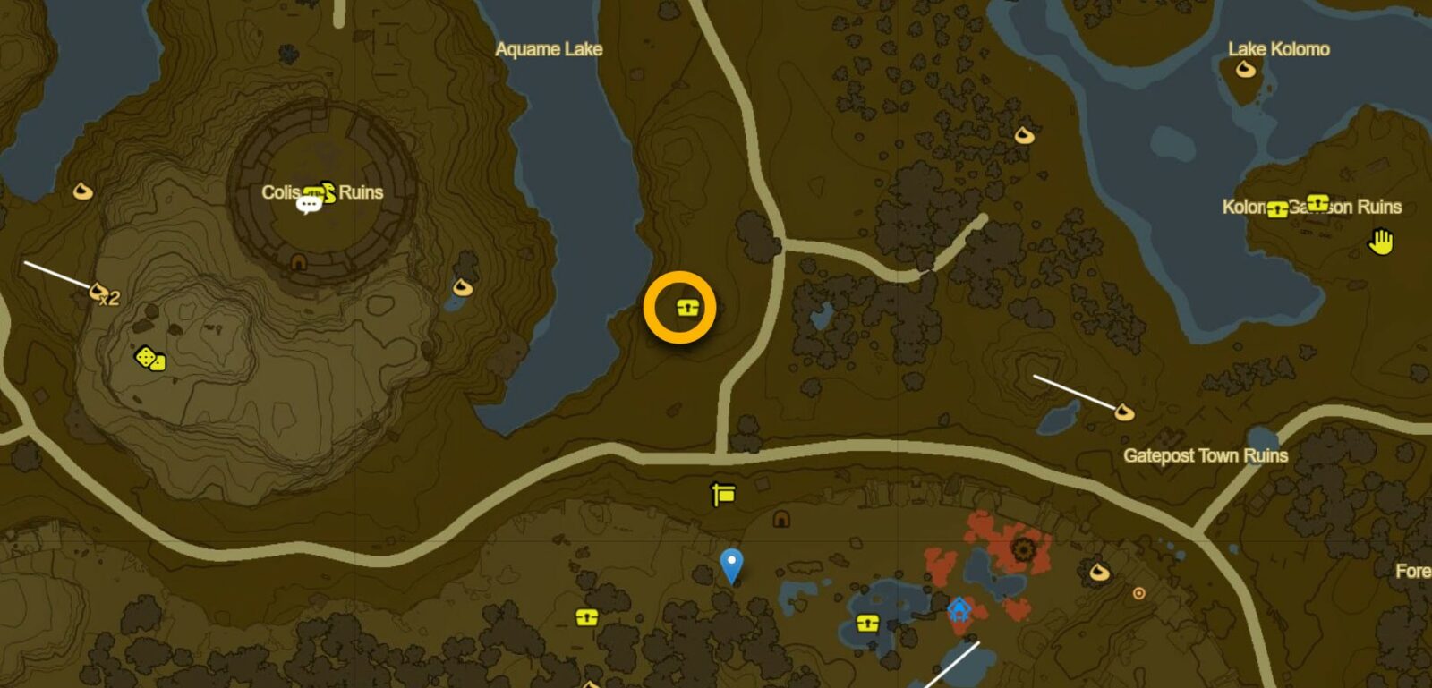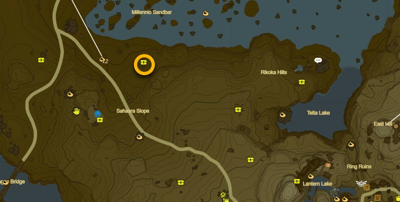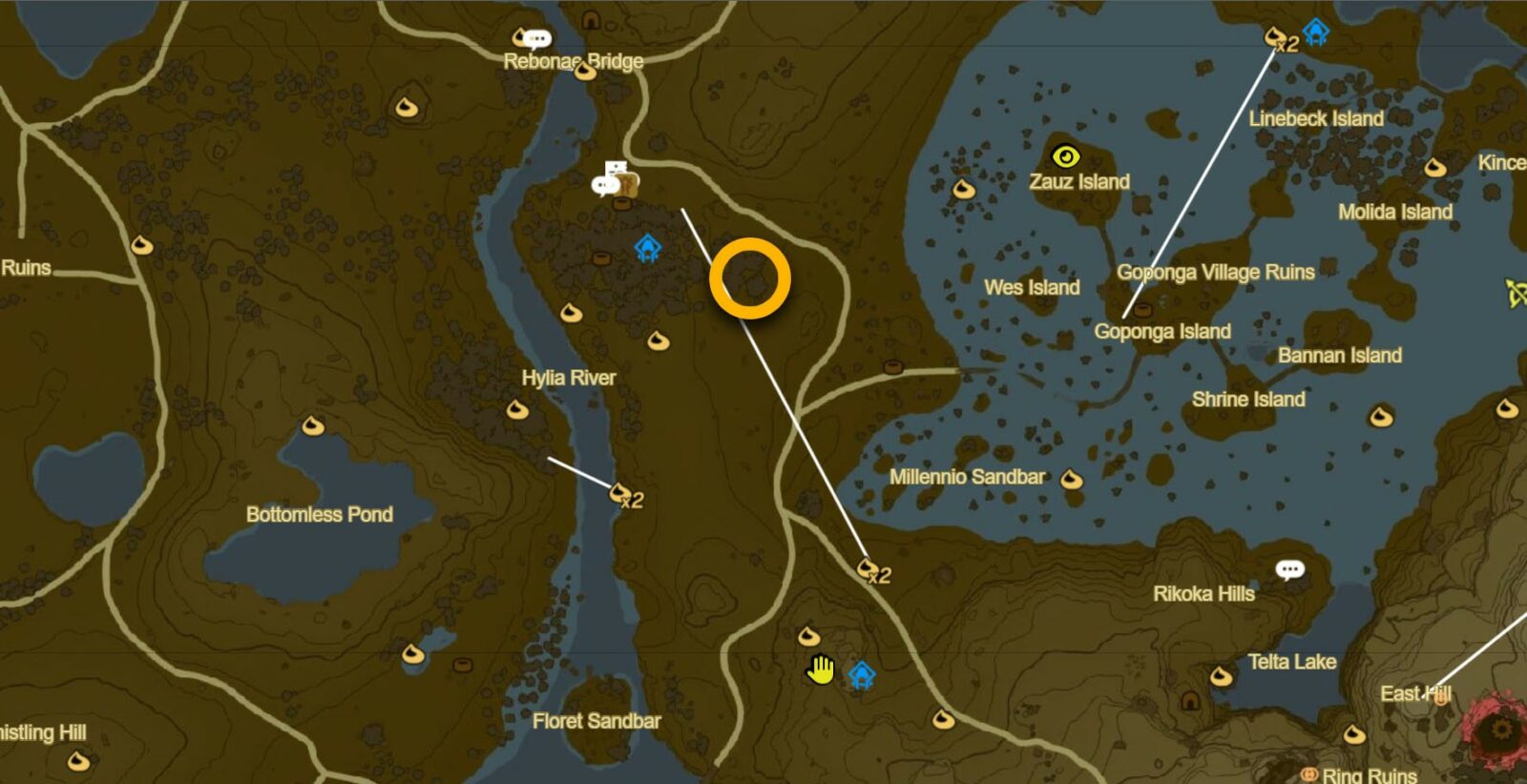 Questa posizione di Lizal Boomerang si trova nella regione di Hyrule Field della mappa di superficie. Il punto di riferimento più vicino alla posizione di Boomerang è il santuario di Kyokugon (-0710, -1550, 0006) che si trova a nord-est della Foresta dello Spirito e a sud-ovest delle Rovine della città di Gatepost.