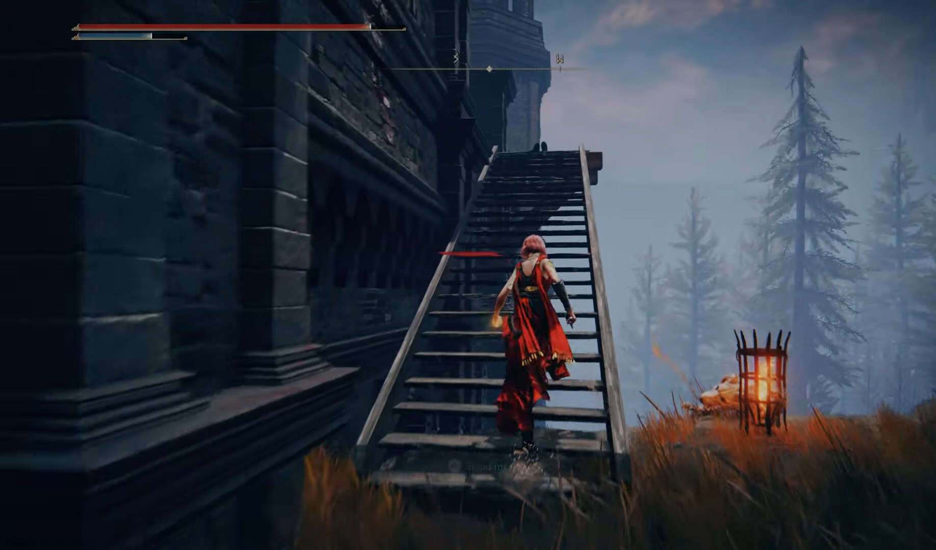 Per trovare questa leggera spada, inizia dal Castle Front Site of Grace. Sali l’enorme set di scale di fronte a te. Una volta raggiunta la fine, vai a nord -ovest per trovare un altro set di scale che portano verso l’alto.