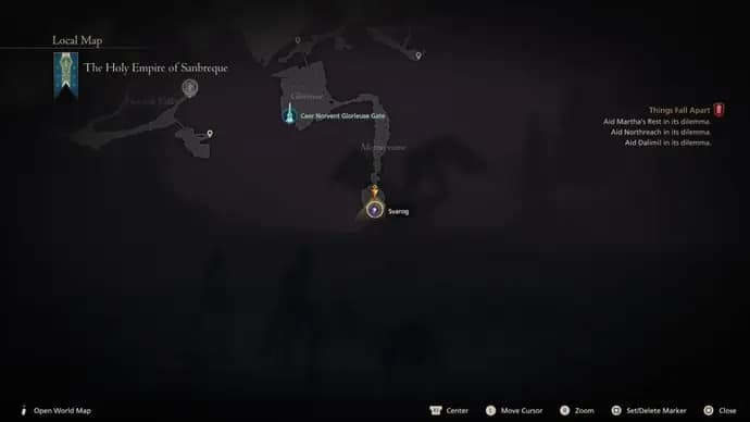 Lo Svarog si trova nell’angolo sud-orientale del Sacro Impero di Sanbreque, proprio di fronte a Mornebrume.