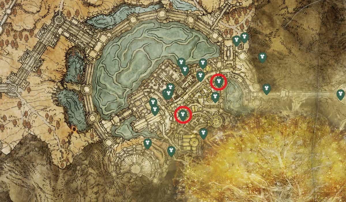 Coltivare i nemici della Pagina per il loro set di armature della Pagina non sarà così lungo nel gioco. Tuttavia, se desideri un’altra località agricola, dirigiti verso le due posizioni contrassegnate sulla mappa in basso a Leyndell, Royal Capital. Troverai molte pagine qui da uccidere.