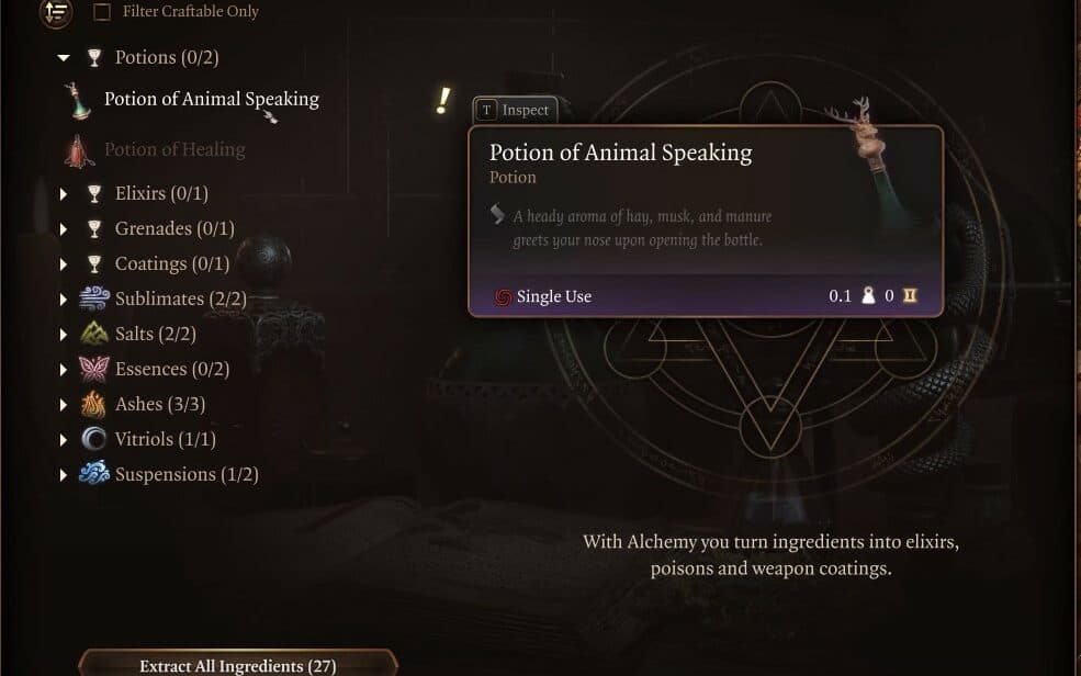 Interpreti una classe come il Monaco o il Ladro? Bene, non preoccuparti perché puoi ancora parlare con gli animali in BG3. Tutto quello che devi fare è ottenere gli ingredienti e creare la pozione del parlare animale. Proprio come l’incantesimo, l’effetto della pozione dura fino al successivo Riposo Lungo.