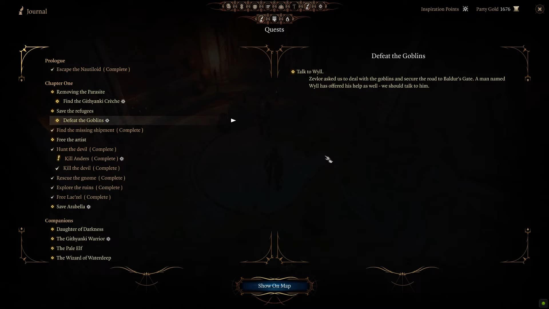 Halsin ti informa dei piani dei goblin per attaccare Druid Grove. Chiederà il tuo aiuto per sconfiggere tre leader goblin e aiutarlo a salvare la sua casa. I tre leader in questione sono Priestess Guts, Minthara e Dror Ragzlin.