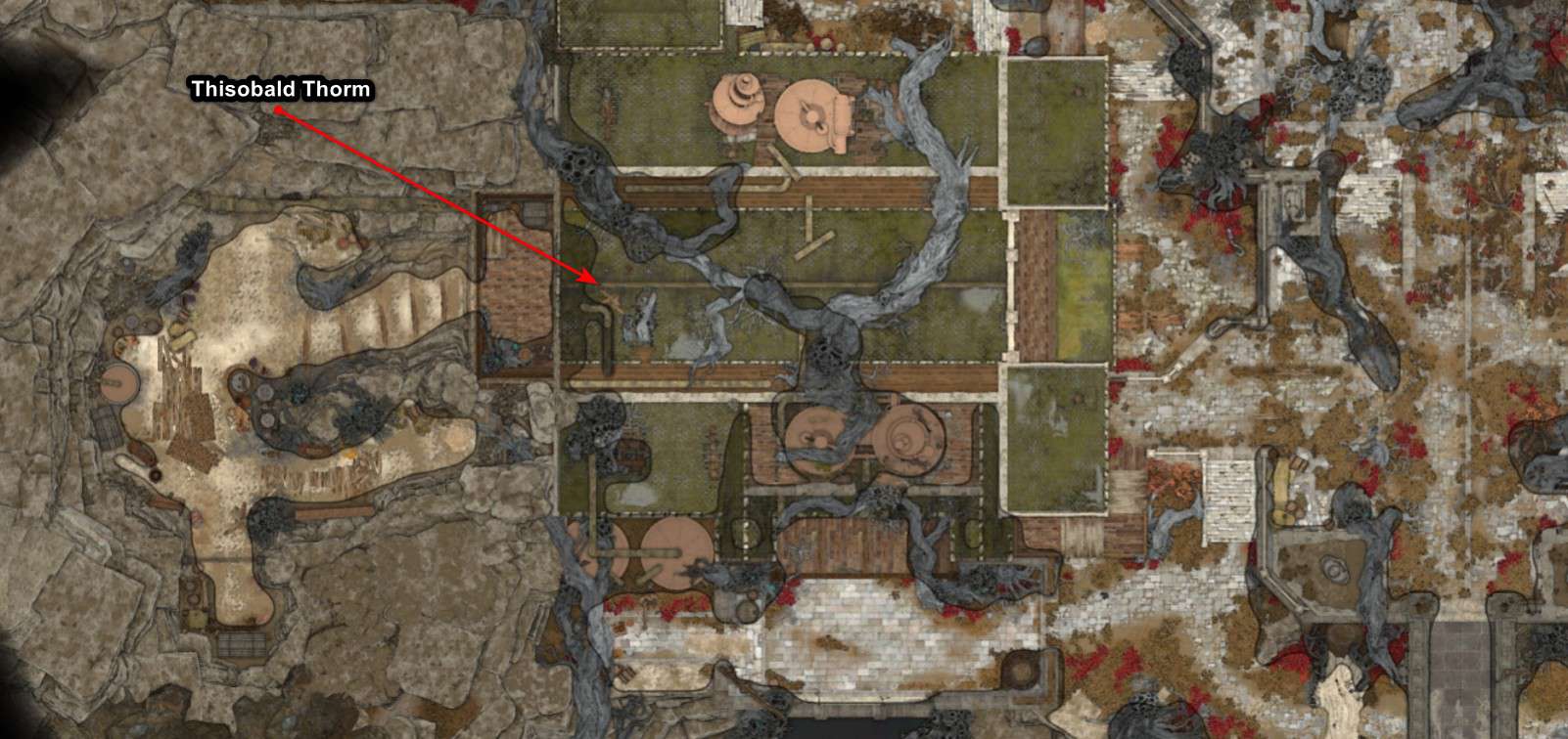 Raggiungere l’ingombrante Thisobald Thorm nel gioco non è un compito difficile. Gestisce la distilleria locale in Shadow Cursed Lands conosciuta come The Waning Moon. Thisobald Thorm può essere trovato seduto nel suo bar a servire agli avventori la sua birra mortale appena preparata.