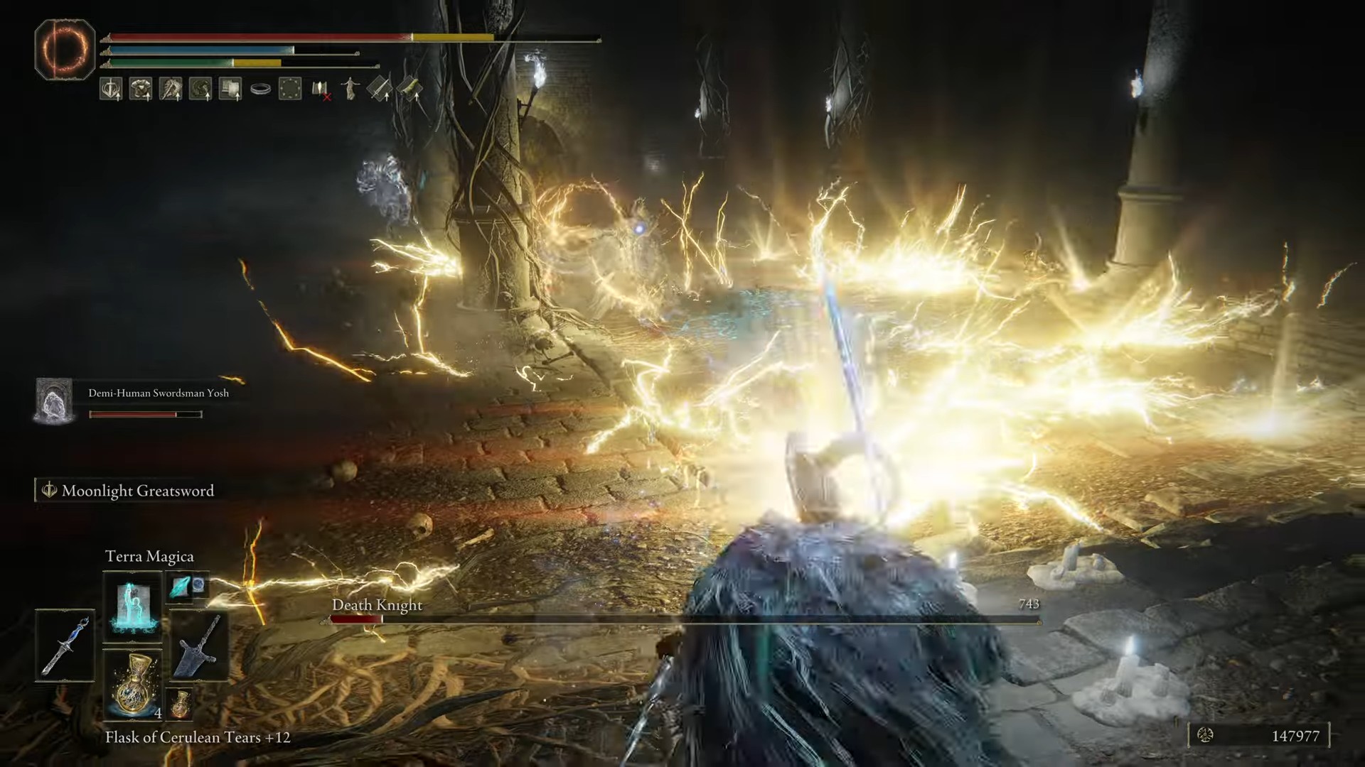 Il peggior attacco da parte della morte nell’anello di Elden è il Lucile. Il boss evoca un fulmine in mano e lo getta verso i giocatori. Six sigils appaiono dietro il cavaliere sotto forma di un cerchio, che spara anche lance di fulmini contro i giocatori.