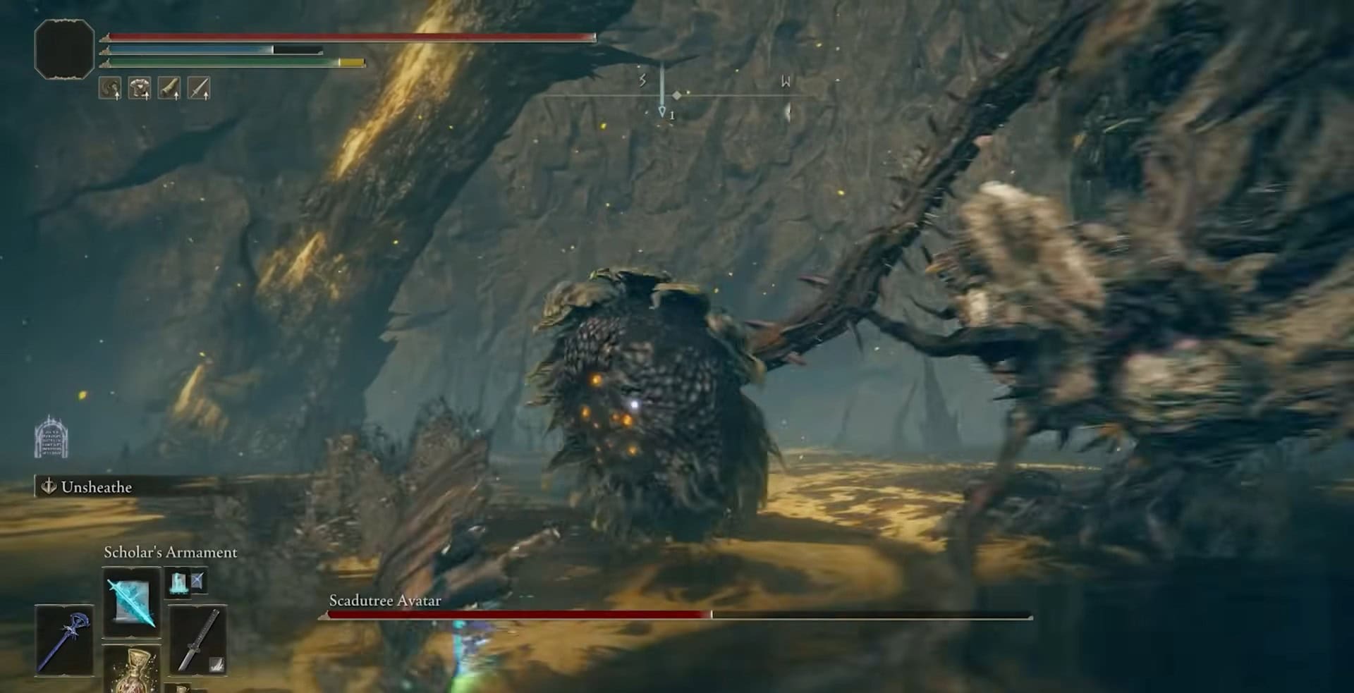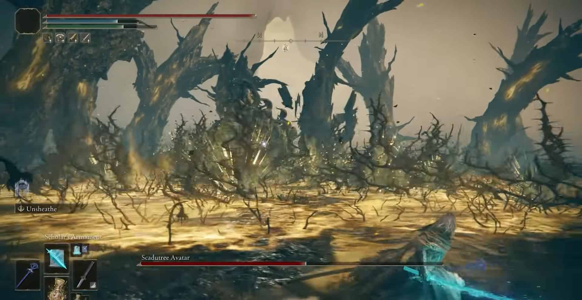 Se vedi il boss che mette le braccia a terra, corri il più lontano possibile, poiché Scadudure Avatar evocherà le viti spinose da terra. Questo attacco può essere evitato guardando il pavimento, poiché l’area brillerà d’oro prima che spuntino le viti.