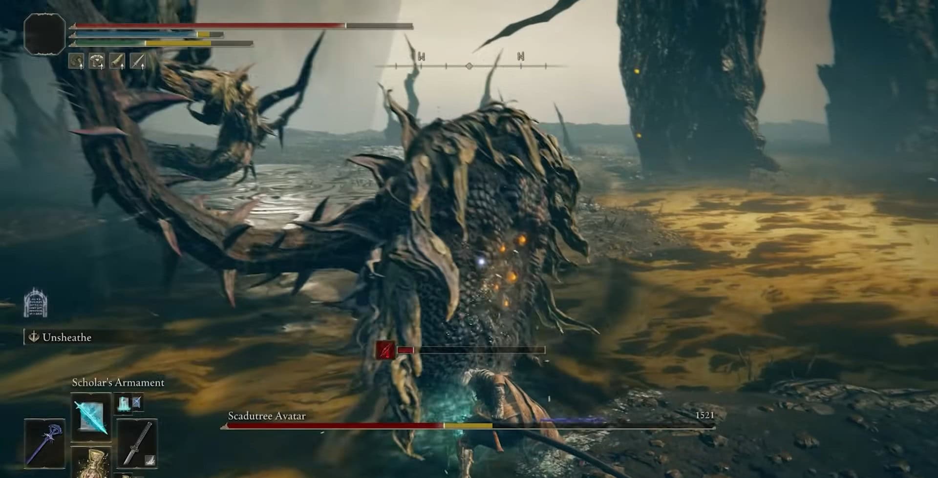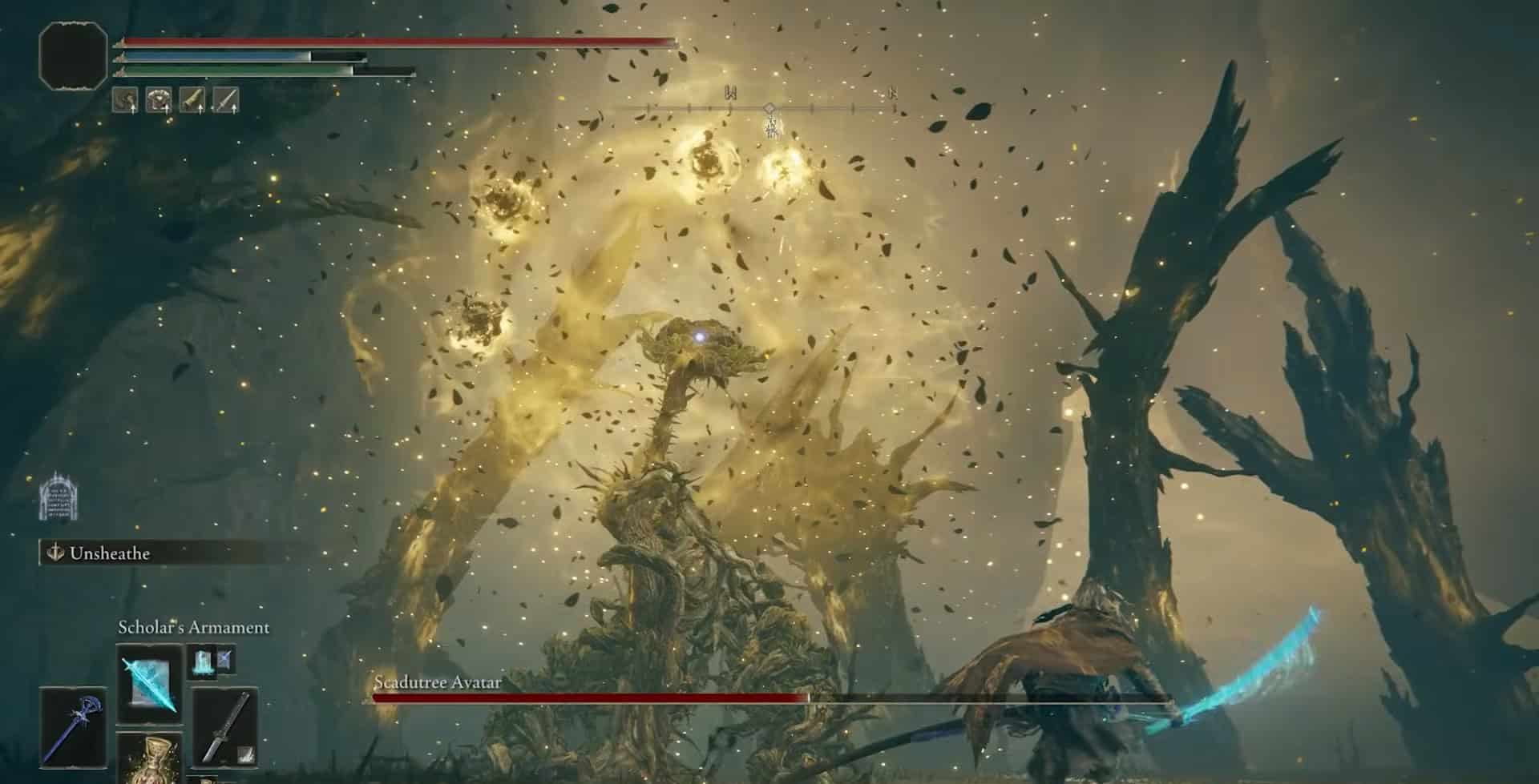 Scadutree Avatar in Elden Ring ha tre fasi, ognuna con una barra di salute completa. Ogni barra di salute consecutiva è più della precedente.