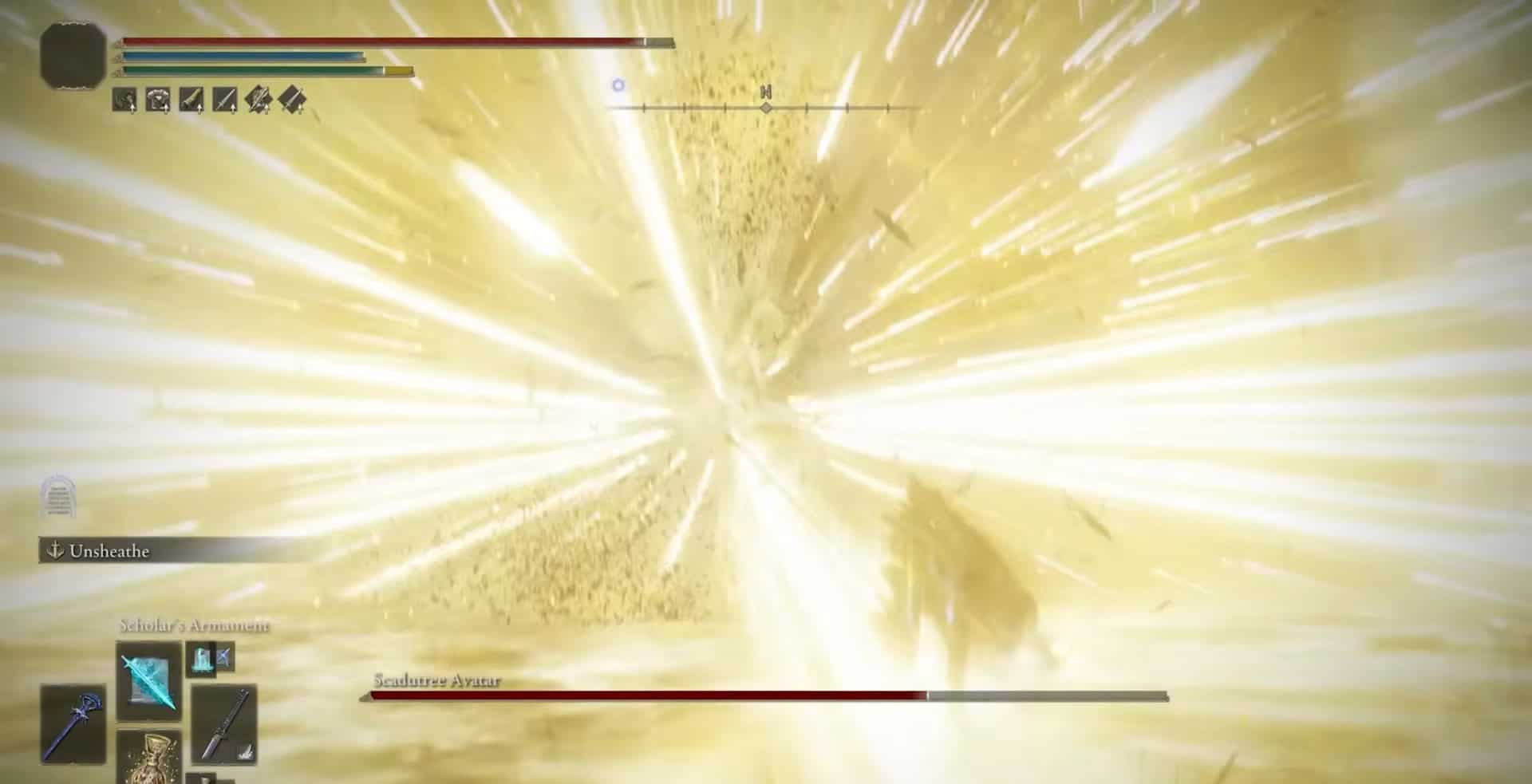 La seconda fase inizia sempre con l’avatar di Scadudure che ti ricarica tre volte. Questo è un attacco estremamente difficile da schivare a causa dei suoi tempi.