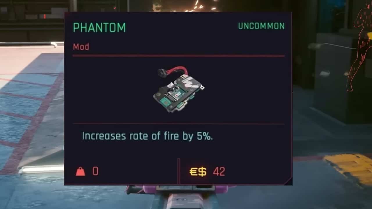 Phantom Weapon Mod è un’altra voce degna di nota nel nostro elenco delle migliori mod per armi in Cyberpunk 2077. Aumenta la velocità di fuoco del 5% dell’arma in cui è inserita.