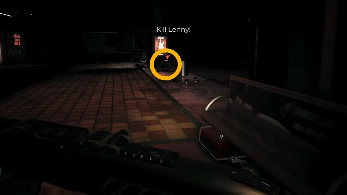 Puoi uscire dalla stanza e girare rapidamente a sinistra, scendendo le scale per trovare Lenny steso a terra. Devi porre fine a questo zombi e alle sue pedine prima di raccogliere la chiave e tornare da Ranieri.