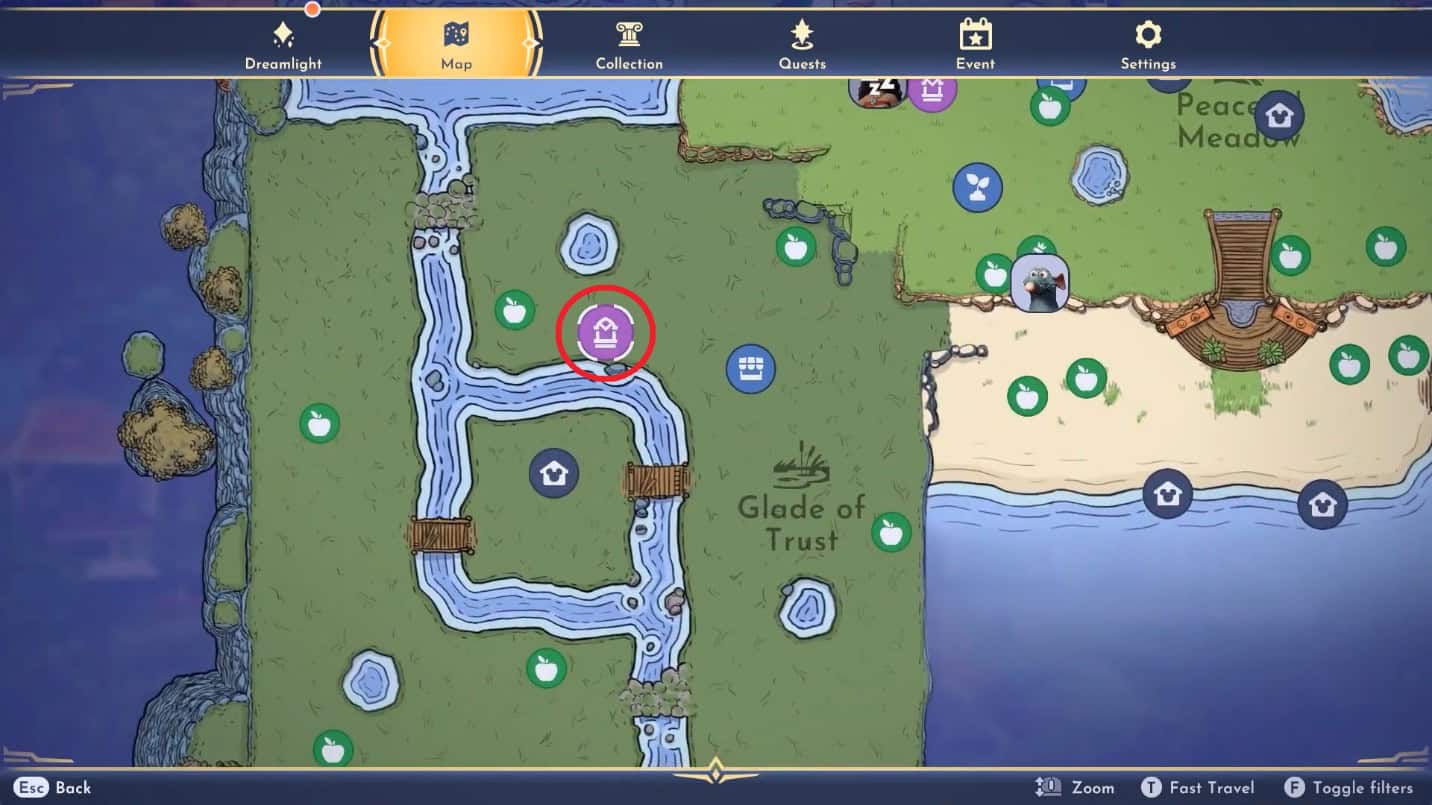 Il secondo Cristallo Oscuro si trova nel Radura della fiducia bioma. Raggiungi l’entrata della casa di Madre Gothel.