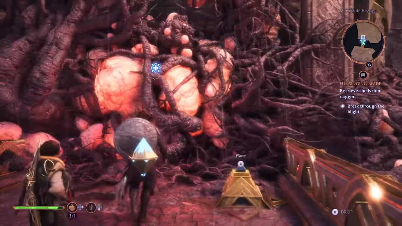 Incontrerai prima Blight durante la missione principale, “The Singing Blade”, mentre ti trovi sull’Antico Ponte nell’area del Passaggio sulla Scogliera. La piaga è una serie di nodi collegati tramite viticci e per superarla è necessario rimuovere tutti i nodi.