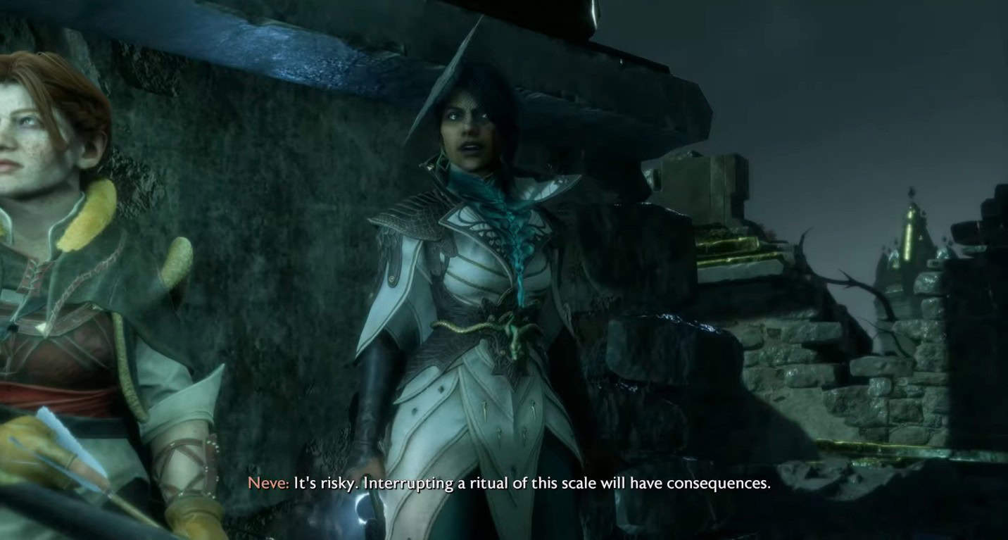 Se scegli Neve, puoi usare i suoi poteri per far cadere le statue e interrompere i rituali di Solas, mentre Harding si occupa dei nemici in arrivo. Il risultato di questa scelta è che Neve si fa male e non sarà lì per la tua ricerca di Bellara. Ma lei si unirà alla ricerca di D’Meta e del sindaco. Otterrai molti punti di approvazione per Neve, il che potrebbe rendere più facile innamorarsi di lei.