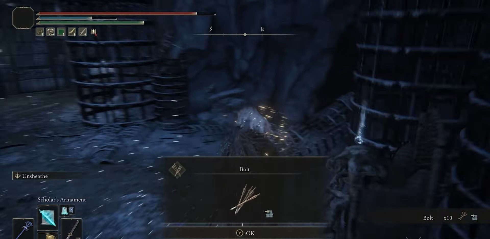 Esci e segui il percorso fino a raggiungere una scala. Usa la scala per raggiungere un’altra cella di prigione in cima. Non appena entri in questa stanza, sarai un’imboscata da un altro nemico sciamano. Uccidilo e raccogli Fascino del corno stalwart +2.