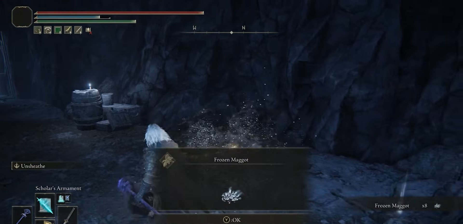 Dal sito di grazia di Bonny Gaol, scendi dalla caverna e prendi il primo vicino ai barattoli sospesi. Prendi un altro diritto per entrare in una piccola cella di prigione e raccogliere 8x vermi congelati.