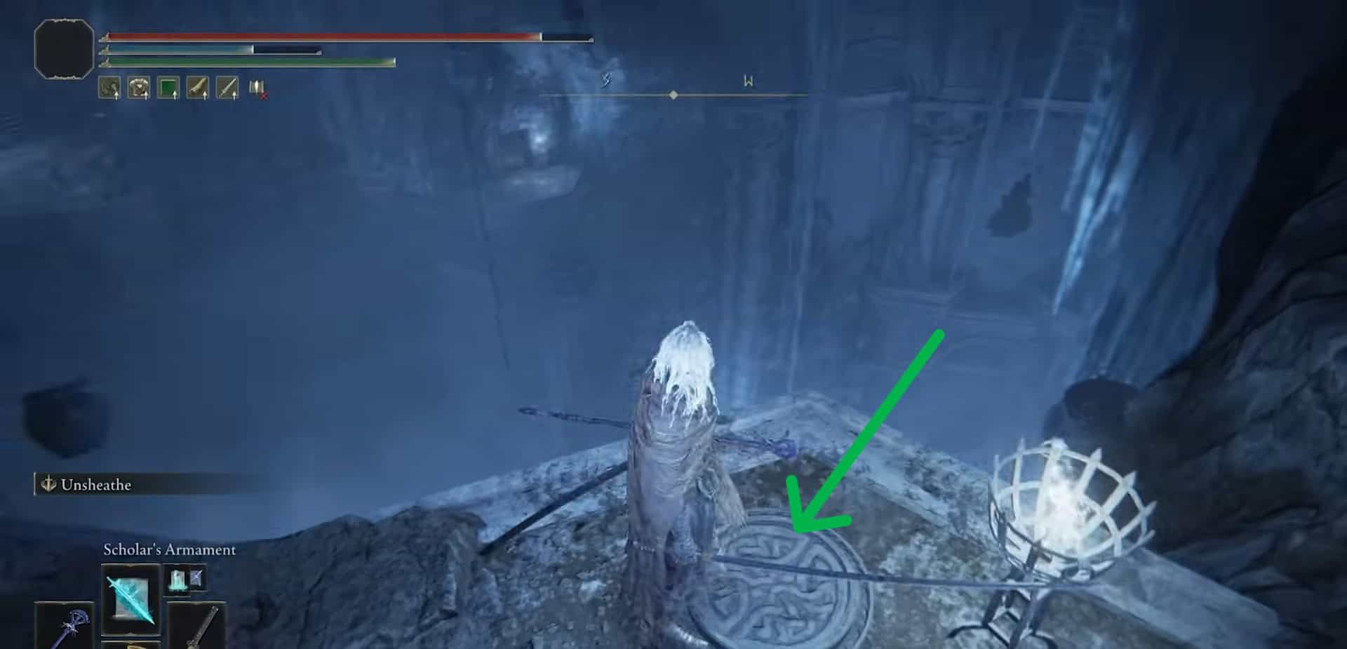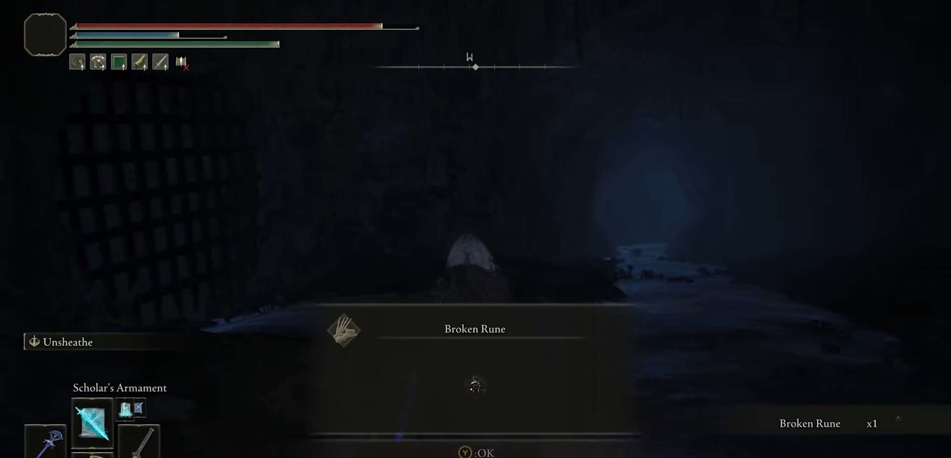 Uccidi un paio di nemici e salta giù per un buco all’estremità opposta della stanza. Raccogliere 1x rune rotto e torna immediatamente indietro.