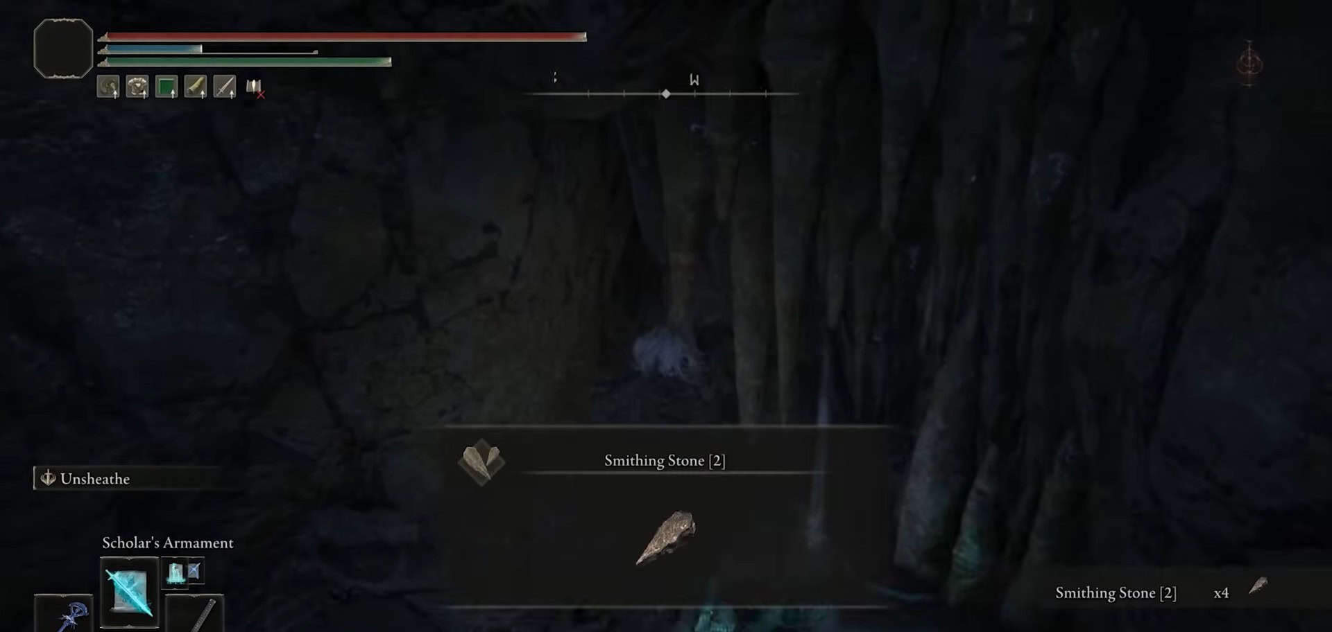 Segui il flusso d’acqua a monte e uccidi un paio di topi sul tuo percorso. Passare attraverso una piccola apertura a destra per raccogliere 1x Smithing Stone 2.