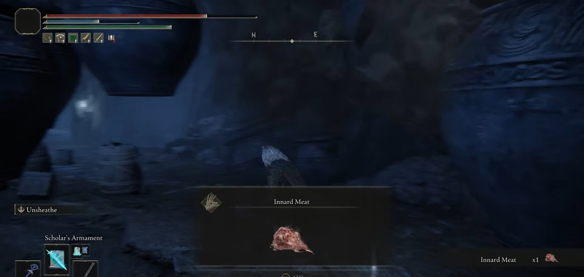 Segui il percorso e scendi da un’altra apertura nel muro. Questa stanza ha molti barattoli sospesi. Raccogliere 1x Innard Meat e sconfiggi un paio di nemici sciamani.