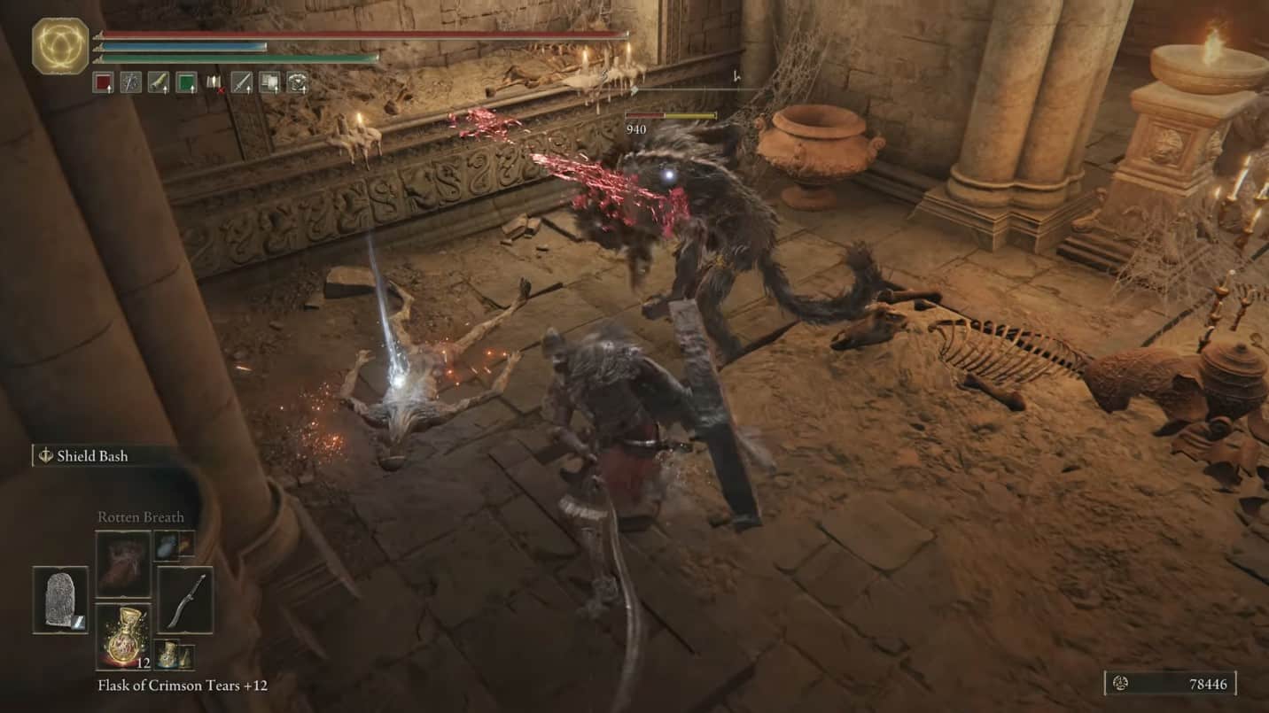 Scendi nell’area della Tomba della Bestia; dovrai combattere gli Uominibestia qui. Queste bestie infliggono molti danni, quindi quando le colpisci, assicurati che rimbalzino prima sull’arma che le stordisce.