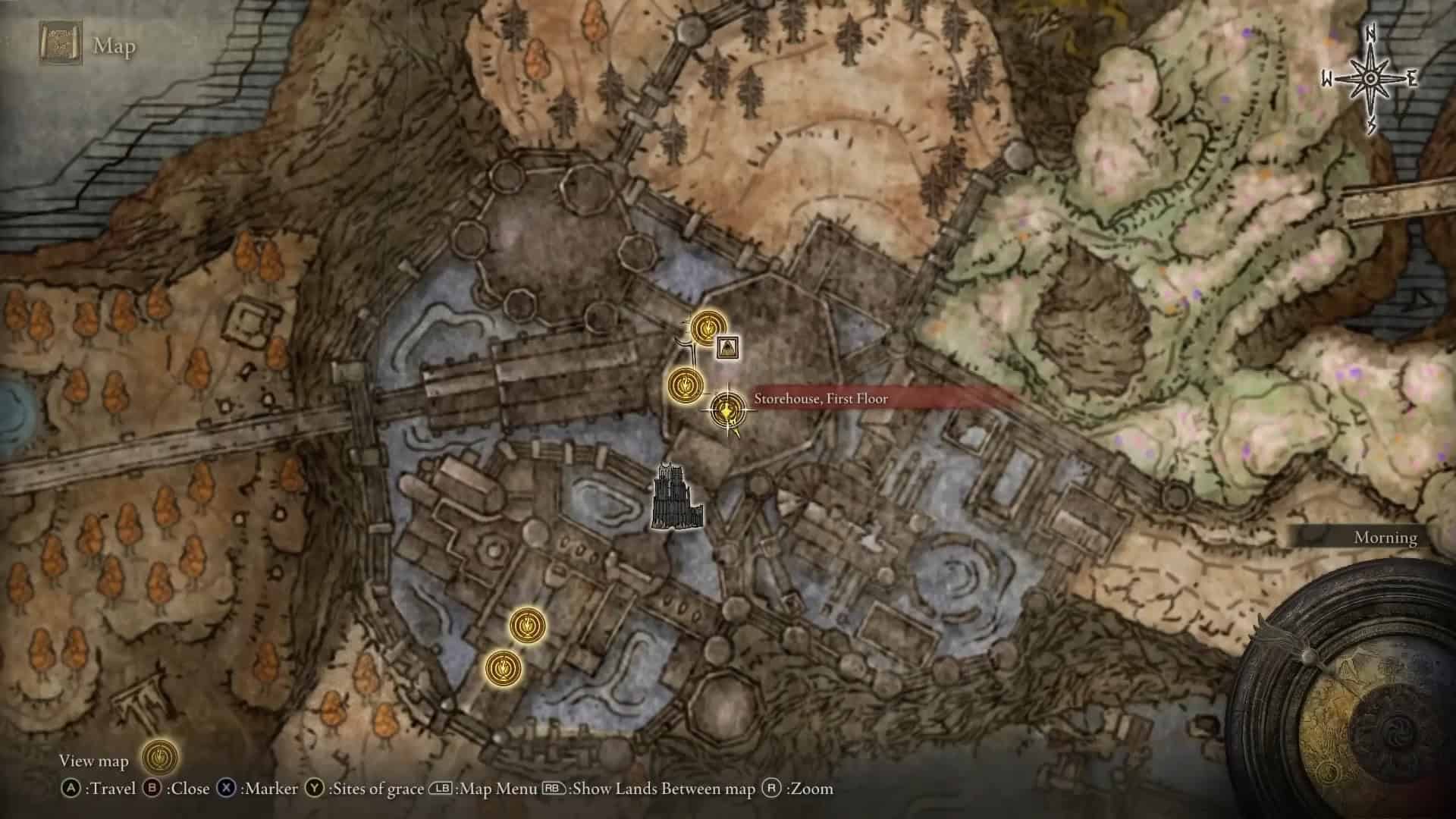 Il primo incontro con Sir Ansbach si svolge al Croce del cancello principale sito di grazia, appena fuori da Torre. È il primo dungeon legacy all’ombra del DLC Erdtree e si trova nella regione occidentale delle pianure tombe.