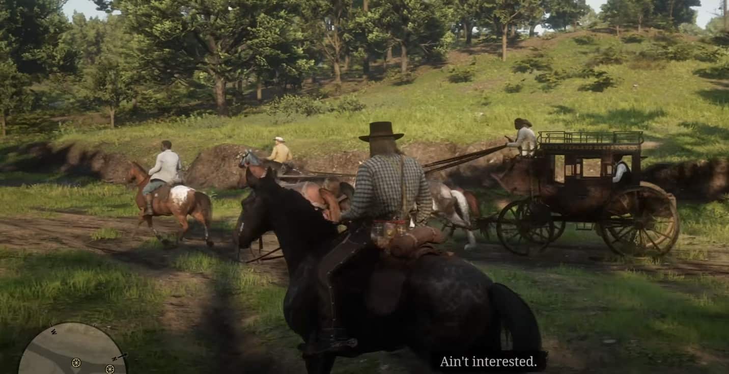 Dopo l’epilogo 1 di RDR2, osservi la banda Laramie terrorizzare alcuni agricoltori e incasinare il loro bestiame. Aiuta la gente comune intervenendo nella situazione per ottenere +2 Onore.