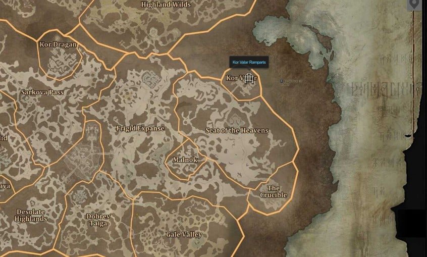 Si trova nella regione di Kor Valar. È piuttosto difficile non vederlo perché questa regione è molto piccola.