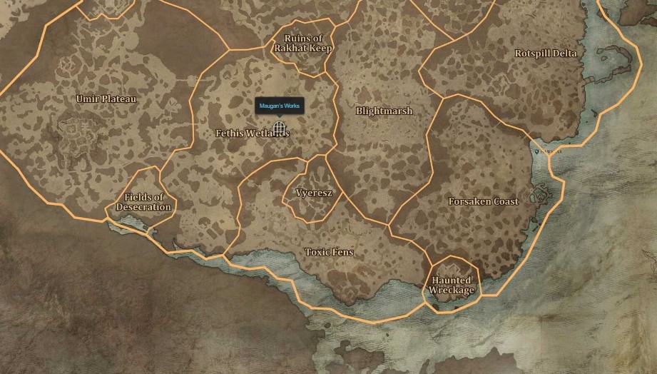 Questo particolare dungeon si trova nel cuore della regione delle paludi di Fethis. Puoi trovarlo facilmente viaggiando a sud-est da Light’s Wane.