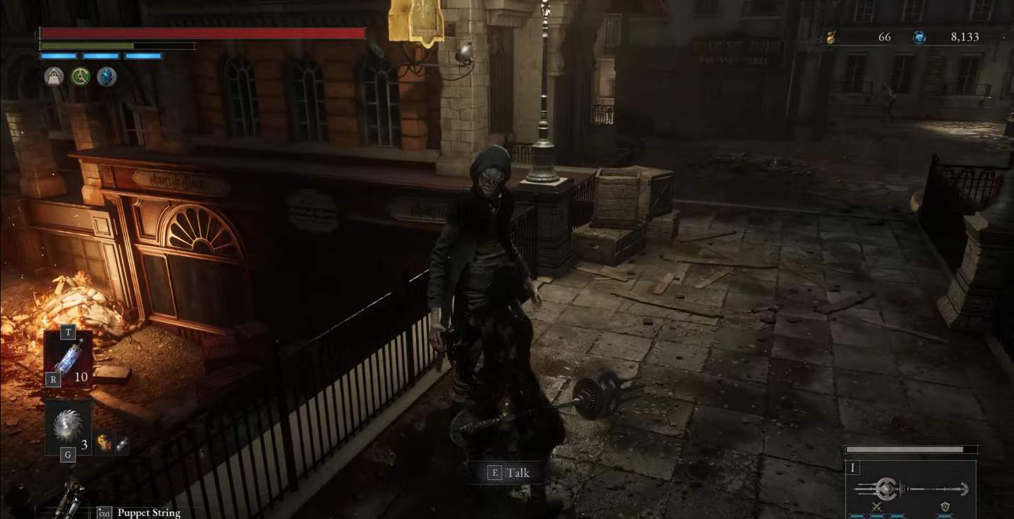 Dopo averlo fatto, puoi recarti all’ingresso di Rosa Isabella Street e dirigerti verso il ponte vicino al Teatro dell’Opera. Lì incontrerai di nuovo il soggetto del test 826, ma questa volta adempirà al suo ruolo di commerciante in Lies of P. Puoi controllare gli articoli che ha messo in vendita.