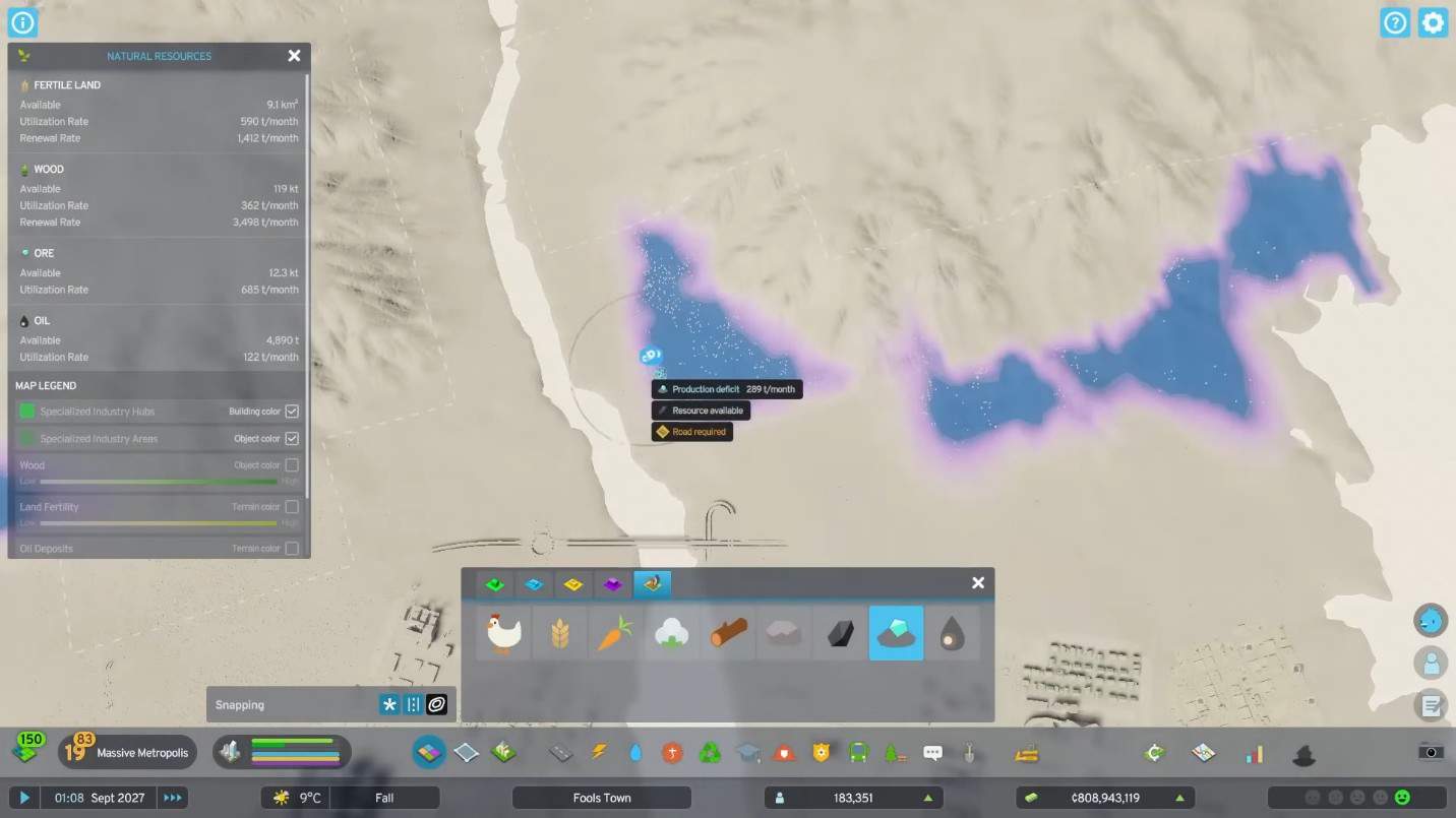 • Controlla di nuovo la regione delle risorse naturali per vedere se hai commesso un errore mentre segnavi il confine. Se l’industria è collocata in un’area leggermente ombreggiata, la produzione non sarà altrettanto elevata a causa dell’indisponibilità delle risorse.