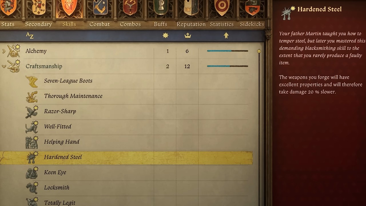| Il segreto di Martin | Livello 16 | Sarai in grado di forgiare armi del quarto, che è il livello di alta qualità (qualità di Henry). Le armi di questa qualità non possono essere ottenute in nessun altro modo. |